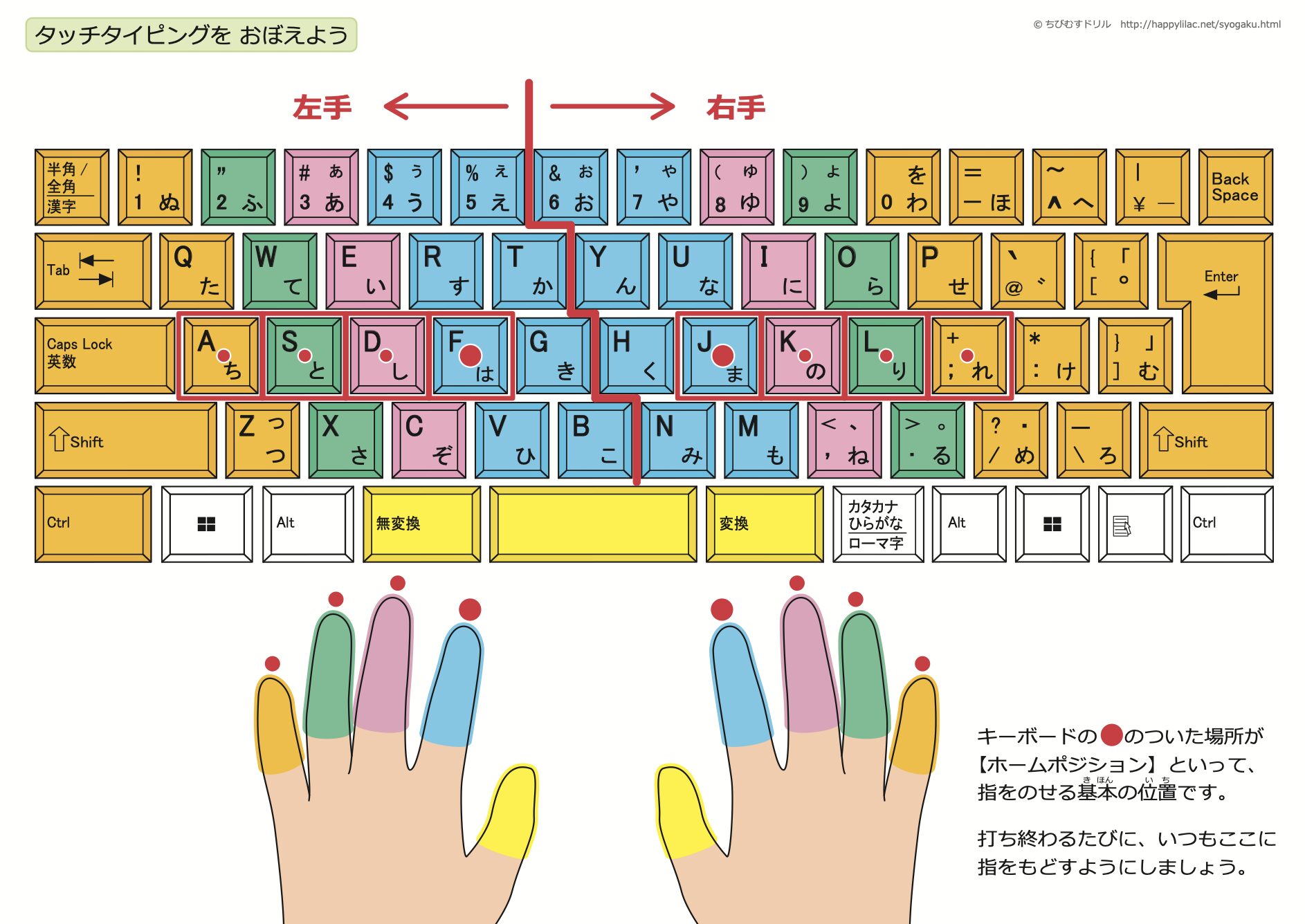 左右の人差し指を「F」「J」に置き、そこを基準にタイピングすること——。